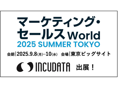 インキュデータ株式会社(本社:東京都港区、代表取締役社長 兼 CEO:町田 紘一、以下「インキュデータ」)は、2025年9月8日(月)~9月10日(水)に開催される、日本最大級のDX総合展「マーケティング・セールス World 2025 夏 東京」に出展します。