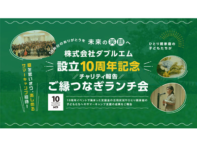 セミナー・イベントマーケティングサービスを展開する株式会社ダブルエム(本社:愛知県名古屋市千種区、代表取締役:安井 勝)が、2025年9月9日に開催する創立10周年記念チャリティ企画の集大成「活動報告&御縁つなぎランチ会」の参加枠が、定員の90名に達し満席となりましたことをお知らせいたします。本イベントは、経営者を中心とした多様なビジネスパーソン同士の交流や新たなご縁づくりを目的としており、定員90名は事前受付で満席となりました。