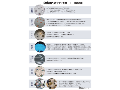 従来のDotconの「自然素材と融合するデザイン性」に加え、Dotcon+は「構造パーツによる自由なタイルデザイン」と「さらなる高耐久性」を備え、幅広いシーンで活用できるようになっています。