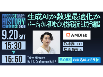 建築業界のDXを推進する株式会社AMDlab(代表取締役CEO:藤井章弘)の取締役CTO・松原昌幹が、2025年9月20日(土)に東京ミッドタウン(六本木)で開催される
