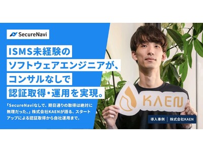 メーカーと代理店をマッチングするプラットフォーム「TAAAN」、メーカーと企業の意思決定者を結ぶ紹介プラットフォーム「TAAAN Referral」等、複数の主力事業を運営する株式会社KAENが、ISMS・Pマークオートメーションツール「SecureNavi」を導入し、未経験かつメインの業務と両立しながらも、ISMS認証の効率的な取得・運用を実現したことをお知らせいたします。