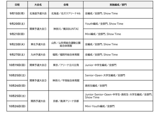 第25回全日本チアダンス選手権大会・第23回全日本学生チアダンス選手権大会 北海道、東北、関東、関西、九州地区予選から東京体育館での全国大会決勝へ!!