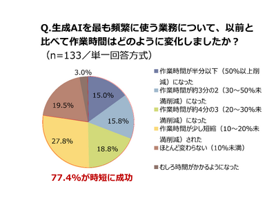 ■ 77.4%が業務時間の短縮を実感。30.8%は30%以上削減(うち15.0%は50%以上削減)