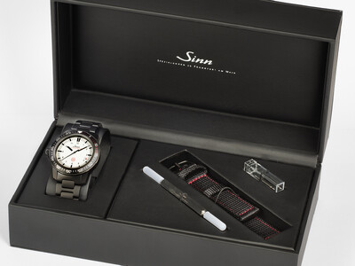 この時計には、特別ケースに赤ステッチのブラック・テキスタイルストラップが標準装備されます。