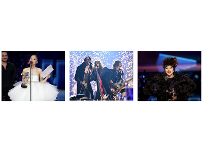 ▲左からアリアナ・グランデ、ヤングブラッド&スティーヴン・タイラー&ジョー・ペリー、レディー・ガガ / Getty Images for MTV