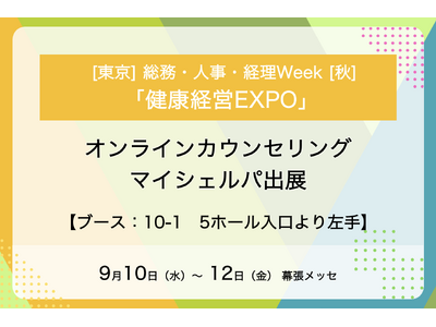 オンラインカウンセリングを提供する株式会社マイシェルパ(以下、当社)は、2025年9月10日(水)~12日(金)に幕張メッセで開催される「 [東京] 総務・人事・経理 Week [秋]」内「健康経営EXPO」へ出展します。【出展ブース番号:10-1】