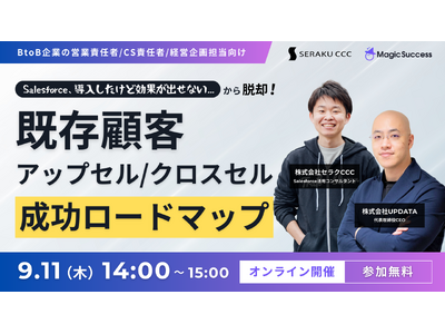 既存顧客支援を促進する「MagicSuccess(マジックサクセス)」を提供するUPDATAと、Salesforceをはじめとするシステム定着・活用支援を行うセラクCCCによる、対談ウェビナー