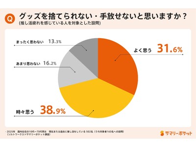 また、「グッズの手放しや整理を考えたことがあるか」という問いには、「時々考える」(55.7%)が最多で、「いつも考えている」(5.2%)と合わせると