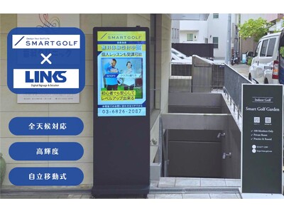 デジタルサイネージ専門メーカーの株式会社LINKS(本社:東京都練馬区、代表取締役:中冨 壯基、以下 LINKS)は、2025年8月7日、ITを活用したインドアゴルフ「SMART GOLF」練習場を全国で153店舗を展開する株式会社SMART GOLF(本社:東京都渋谷区、代表取締役:高須賀 優人)が運営する「SMART GOLF PREMIUM 白金台店」に、クラウド運用型の屋外用デジタルサイネージを導入しました。