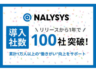 レバレジーズ株式会社が運営するHR系SaaSプロダクト「NALYSYS」は、導入企業数が100社を突破いたしました。あわせて、累計1万人以上の方々にご利用いただいていることをお知らせいたします。