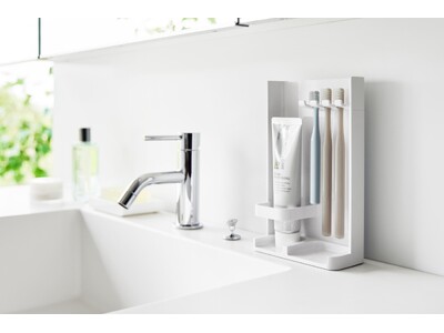 歯ブラシや歯磨き粉をすっきり収納できるスリムスタンド。