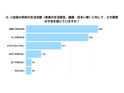 約69%(1,212件)が、将来に不安があると回答しました(「非常に不安がある」649件、「少し不安がある」563件)。