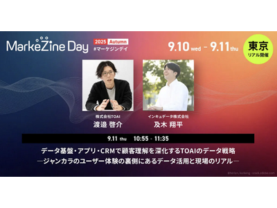 インキュデータ株式会社(本社:東京都港区、代表取締役社長 兼 CEO:町田 紘一、以下「インキュデータ」)は、2025年9月10日(水)~9月11日(木)に開催される、マーケティングの「今」を網羅するイベント「MarkeZine Day 2025 Autumn」に、出展・登壇いたします。