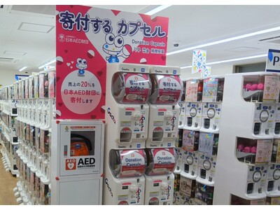 - - 寄付内容:AED設置店舗の『寄付するカプセル』の売上金20%を継続的に寄付し、AEDの普及活動を支援します。