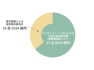 健康関連コストに準じた分析の結果、プレゼンティーイズムによる損失額を37兆0579億円と定義し、そのうち疲労関連による経済損失額は15兆2154億円(全体の41.1%)と算出されました。