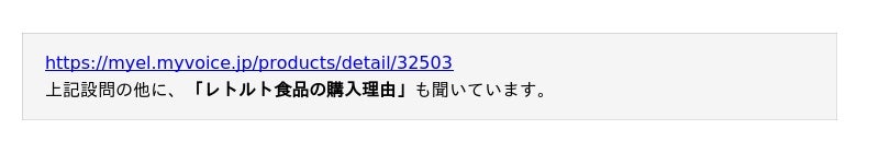 レトルト食品の利用状況や購入状況などについて聞いています。調査結果をお知らせいたします。