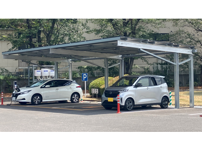 中央研究所に設置したソーラーカーポート、蓄電池、EV車両と充電設備