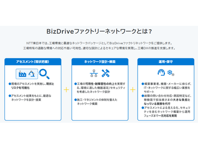 NTT東日本株式会社(以下「NTT東日本」)は、不安定なネットワークに起因した通信トラブルやサイバー攻撃のリスクの増加、管理の複雑化といった製造業の現場が抱える課題に対し、工場ネットワークの設計から構築・運用支援まで一体的に提供するセキュアネットワークパッケージ「BizDriveファクトリーネットワーク」(以下、本ソリューション)※1を2025年9月16日(火)より提供開始します。現場環境に最適な機器の選定と、ネットワークとセキュリティの統合設計により、QCD(品質・コスト・納期)向上とDX推進を後押しします。