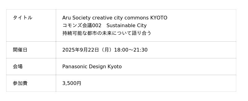 Aru Society creative city commons KYOTO コモンズ会議002 Sustainable City 持続可能な都市の未来について語り合う