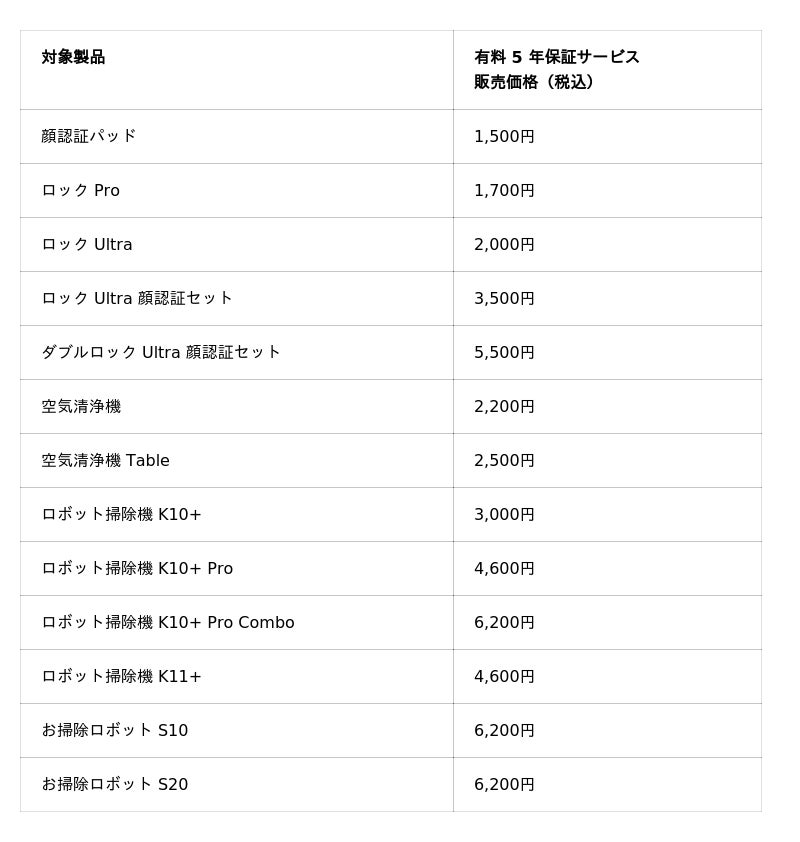 ※SwitchBot公式ストアで、「対象製品」と「有料 5 年延長保証サービス」を同時購入した場合のみ適用されます