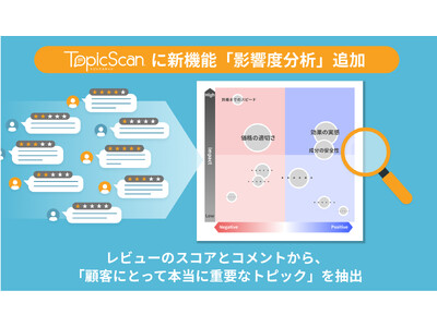 株式会社エモーションテック(本社:東京都港区、代表取締役:今西 良光)は、同社の提供する生成AI×統計解析を活用したVoC分析サービス「TopicScan︎」に、カスタマーレビュー等のVoCから、製品やサービスの強み・弱み(レビュー評価に影響が強い体験)を可視化できる新オプション機能「影響度分析」をリリースしたことをお知らせいたします。