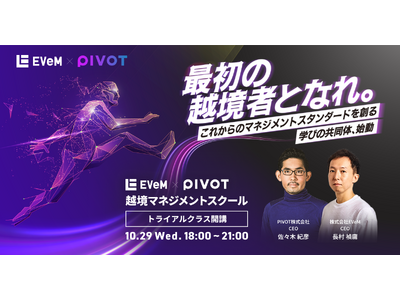 マネージャーイネーブルメントサービスを提供する株式会社EVeM(本社:東京都新宿区、代表取締役:長村 禎庸)は、PIVOT株式会社(本社:東京都渋谷区、CEO:佐々木 紀彦)と共同で、業種や役職を越えて多様な参加者が集う、越境型のマネジメントスクールの1dayトライアルクラスを開講し、「学びの共同体」への初回参加者を募集します。