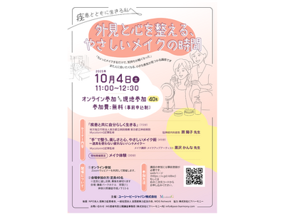 ユーシービージャパン株式会社(本社:東京都、メディカルアフェアーズ本部 希少疾患メディカルアフェーアズ部 部長 岩城 相憲)は、希少・難治性疾患とともに生きる方々を対象にした市民公開講座「外見と心を整える、やさしいメイクの時間」を、2025年10月4日(土)にオンラインおよび現地参加のハイブリッド形式にて開催いたします(参加無料・事前申込制)。