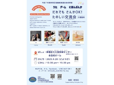 本事業は、令和7年度新宿区協働推進基金助成事業として実施するもので、外国人と日本人が日本文化を体験しながら交流するイベントです。単なる娯楽の場にとどまらず、互いの文化を理解し合うための新しい交流の形を生み出すことを目指します。