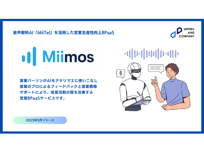 インプレックスアンドカンパニー株式会社(本社:東京都港区、代表取締役:伊藤 勝成、以下 インプレックスアンドカンパニー)は、音声解析AI「MiiTel」を開発・提供する株式会社RevComm(本社:東京都渋谷区、代表取締役:会田武史、以下レブコム)との戦略的パートナーシップに基づき、両社の強みを融合した新サービス「Miimos(ミーモス)」の提供を開始したことをお知らせします。