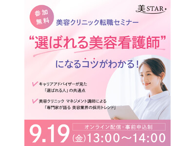 美STAR 「第1回 美容クリニック転職セミナー」を9月19日(金)に開催!キャリアアドバイザーが「選ばれる美容看護師の共通点」を解説