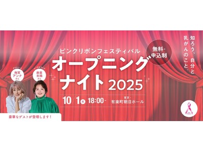 ピンクリボンフェスティバル運営委員会事務局(公益財団法人日本対がん協会ほか)は10月のピンクリボン月間がスタートする10月1日(水)に、梅宮アンナさん、麻倉未稀さんをゲストとしてお招きして、「ピンクリボンフェスティバル2025 オープニングナイト」を開催します。