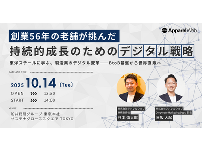 株式会社アパレルウェブは10月14日(火)に有料セミナー「創業56年の老舗が挑んだ持続的成長のためのデジタル戦略」を開催いたします。