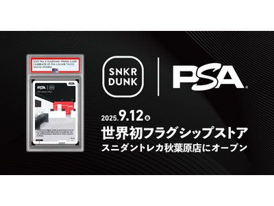 「SNKRDUNK(スニーカーダンク)」(以下、スニダン)を運営する株式会社SODA(本社:東京都渋谷区、代表取締役CEO:内山 雄太、以下SODA)は、世界最大のトレーディングカード真贋鑑定・グレーディングサービス機関「PSA(Professional Sports Authenticator)」を運営するCollectors Universe Japan合同会社と、日本国内での真贋鑑定・グレーディングサービスの拡充を目的とし、パートナーシップを締結したことをお知らせいたします。パートナーとしての取り組みの第1弾として、世界初となる PSA 公式直営店舗「PSA Lounge Tokyo(ラウンジ トーキョー)」 をスニダントレカ秋葉原店5階にオープンいたします。