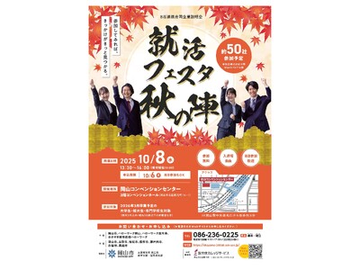 新規学卒予定者等を対象とした8市連携合同企業説明会「就活フェスタ秋の陣」を開催します!岡山市内の企業のほか、津山市、玉野市、総社市、備前市、瀬戸内市、赤磐市、真庭市の