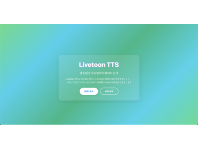 株式会社Livetoon(本社:東京都中央区、代表取締役:木下恭佑)は、日本語音声合成API「Livetoon TTS」の
