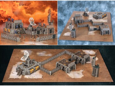 「ウォーハンマー40, 000」の開拓区画を再現する地形モデル。組み換え式防御壁や帝国の建造物など、バリエーション豊かな地形パーツによって臨場感あふれる戦場をお楽しみいただけます。