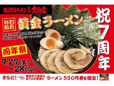 株式会社AZism(本社:東京都立川市、代表取締役会長:和田 敏典)が運営する「横浜家系ラーメン片倉大和家」は7周年を記念し、皆様へ感謝の気持ちを込めて、2025年9月27日(土)28日(日)の