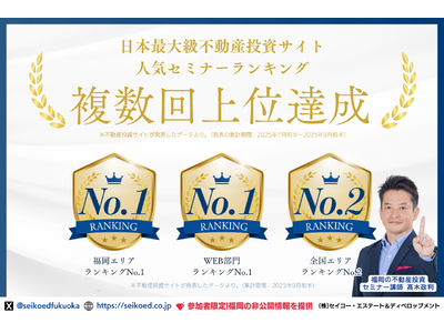 福岡で資産形成・FIREを目指す会社員・公務員等の不動産投資家を支えるセイコー・エステート&ディベロップメント主催セミナーが、日本最大級の不動産投資情報サイトの人気セミナーランキングで複数回上位獲得。