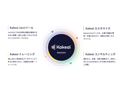 1on1ミーティングをはじめとする面談サポートシステム「Kakeai(カケアイ)」を開発・運営する株式会社KAKEAI(本社:東京都渋谷区 代表取締役社長 皆川恵美、以下KAKEAI)は、主力サービスの「Kakeai 1on1ツール」に加え、「Kakeaiカスタマイズ」「Kakeaiトレーニング」「Kakeaiコンサルティング」の提供を開始しました。4つのソリューションを通じて1on1の導入・実践を包括的に支援いたします。