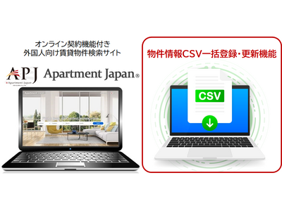 外国人向け賃貸プラットフォーム「Apartment Japan(R)」(https://apartment-japan.com/、以下「Apartment Japan」)を運営するDID-GLOBAL株式会社(本社:大阪市中央区、代表取締役:近藤 暁子、以下「DID-GLOBAL」)は、新たに「CSVによる物件情報一括登録‣更新機能」をリリースしました。