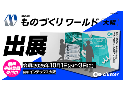 国内最大級のメタバースプラットフォーム「cluster」を運営するクラスター株式会社(本社:東京都品川区、代表取締役CEO:加藤直人、以下「クラスター」)は、2025年10月1日(水)から10月3日(金)までインテックス大阪で開催される日本最大級の製造業向け展示会「ものづくりワールド」に出展いたします。
