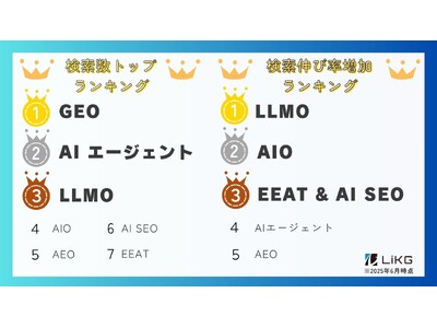 株式会社LiKG(所在地:東京都渋谷区、代表取締役社長:近藤光生)は、Google広告キーワードプランナーを基に、SEO・デジタルマーケティング領域に関連する主要キーワードの検索動向(=Google上で1か月あたりに検索されている回数の目安)を、2025年1月から6月にかけて独自に分析しました。