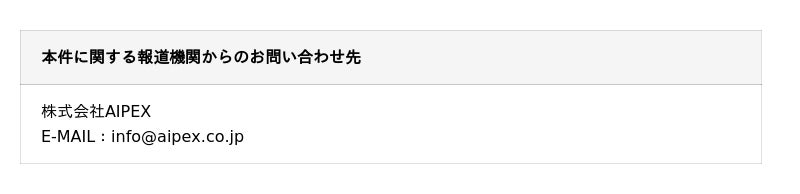 利用料金やお申込に関する詳細は、AIPEXコーポレートサイトのお問い合わせページよりご連絡をお願いいたします。[