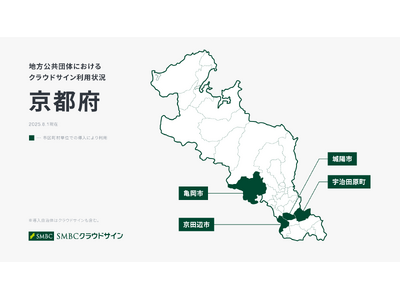 SMBCクラウドサイン株式会社(代表取締役社長:三嶋 英城)が提供するクラウド型電子契約サービス「SMBCクラウドサイン」と、弁護士ドットコム株式会社(東京都港区、代表取締役社長 兼 CEO・弁護士:元榮 太一郎)が提供する契約マネジメントプラットフォーム「クラウドサイン」は、京都府内において、亀岡市、城陽市、京田辺市、宇治田原町の4自治体で導入・支援を行ったことをお知らせします。