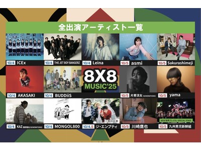 [8×8 MUSICFESTIVAL実行委員会](実行委員長:尾関 真)は、[8×8 MUSICFESTIVAL2025]の追加アーティストを発表します。久留米を中心に県南の各都市それぞれが垣根を超え、共に「らしさを」発揮し共に県南のハッピーな未来を創るためのイベントです。単なる集客と一時的な活性ではなく、今後継続し豊かな県南の文化や食・伝統を次世代に継承していくための県南の未来へのエンジンであり、そしてたくさんの魅力がお客様の心を捉え、県南を好きになってもらうためのプラットフォームとなるイベント。