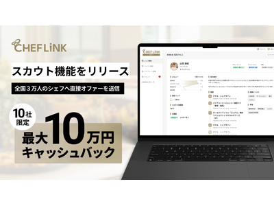 本リリースにより、シェフは自身のスキルや実績を評価されたオファーを受け取ることが可能となります。「CHEFLINKスカウト」は、深刻化する飲食業界の人材不足に対する新たな解決策となると同時に、料理人のキャリア形成の新しい形を拓くものです。
