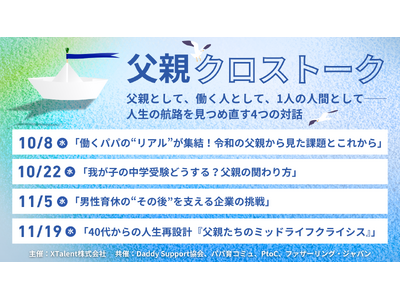 XTalent株式会社(読み:クロスタレント、本社:東京都港区、代表取締役社長:上原達也)は、2025年の国際男性デーにあわせて、父親の「キャリア」「子育て」「教育」「心身の健康」をテーマにした、全4回にわたるオンラインイベントを開催いたします。