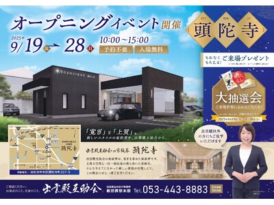 株式会社出雲殿互助会(所在地:浜松市中央区連尺町、代表取締役:岸本裕一郎)は、2025年9月19日、新たな家族葬ホール「出雲殿互助会の家族葬 頭陀寺」をオープンいたします。