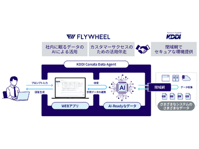 本サービスは、フライウィールの情報検索技術と生成AIを活用したデータ活用アシスタント「Conata Data Agent」に、KDDIの閉域網サービス「KDDI Wide Area Virtual Switch 2」を組み合わせることが可能です。