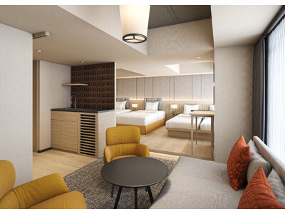 全57室の客室は最大約56平米の広さを確保し、4名様を中心に最大6名までの宿泊が可能なゆとりあるファミリー・グループ向けの設計です。室内は機能性とデザイン性を兼ね備えたインテリアで統一されており、まるで自宅のようにくつろげる空間を提供いたします。長期滞在にも対応した家具・設備を完備し、訪日外国人旅行者にもご満足いただける環境を整えています。